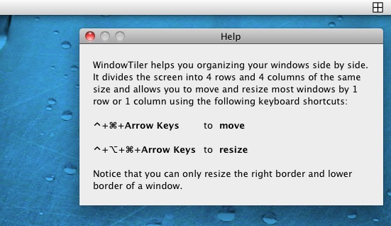 Mit WindowTitler kann man beliebige Fenster per Shortcut verschieben und in der Größe ändern. Ist nicht das einzige Tool, welches diese Aufgabe übernehmen kann. Es ist aber derzeit kostenlos im Mac AppStore zu laden.