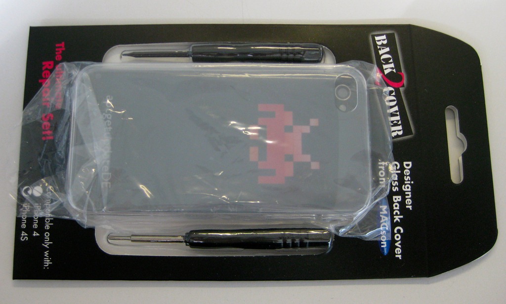 Die Bestellung kam nach ca. 10 Tagen an. Das Zusammenbauen hat keine 2 Minuten gedauert. (Premiere für mich – ein iPhone hatte ich auch noch nicht auseinandergenommen.) Das iPhone 4S lässt sich aber recht einfach mittels 2 Schrauben auf der unteren Seite öffnen. Das benötigte Werkzeug ist sogar inklusive. Heißt zwei Schraubenzieher werden mitgeliefert. 2 Ersatzschrauben sind ebenso im Lieferumfang enthalten. Alles in allem macht Back2Cover auf mich einen sehr runden Eindruck. Der Druck ist super und das Cover sieht aus wie das Original, nur jetzt mit individuellem Logo. Toll. Zusätzlich gibt es derzeit auch noch ein durchsichtiges Protector-Case obendrauf, damit das neue Cover nicht gleich zerkratzt ;) Ich habe es gleich mit einer Folie beklebt.