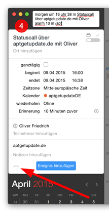 Außerdem kann man Termine über die OS X Diktierfunktion per Sprache eingeben oder Links vom Safari über eine neue Teilen-Funktion zu Fantastical hinzufügen.