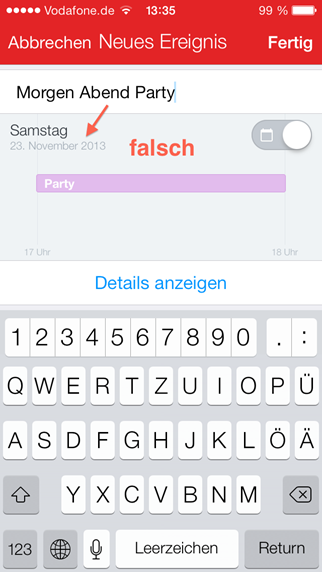 Mir ist allerdings nicht ganz klar welche indirekten Daten Fantastical richtig umsetzen kann. Dinge wie Karfreitag, Ostersonntag, Weihnachten, Silvester, Neujahr oder eben Pfingstmontag funktionieren super; Vatertag, Helloween, Tag der Arbeit, Valentinstag oder Tag der Deutschen Einheit hingegen nicht.