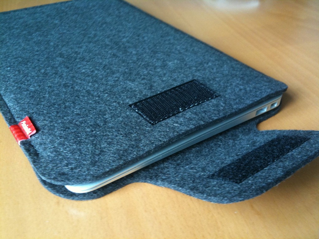 Dieses aus Merino Wollfilz gefertigte Sleeve ist nach wie vor mein täglicher Begleiter. Da ich mit dem Material und der unveränderten Passform auch nach gut einem Jahr sehr zufrieden bin, soll heute ein Test der Sleeves für das iPhone und iPad folgen.