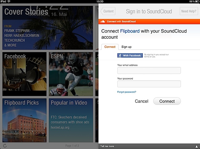Mittlerweile hat die App Version 2.1 erreicht. Neben vielen kleineren neuen Funktionen und optischen Anpassungen, wurde nun u.a. die sehr populäre Musikplattform SoundCloud integriert.